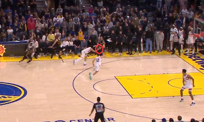 第二次是漏判,發生在距離比賽結束還有9.1秒,裁判報告指出,當時布克推了庫里,應該要吹犯規,但裁判沒有響哨。這是一次漏判,從報告上看是勇士吃虧,但當時比賽只剩不到10秒,太陽落后1分,布克雖然第一意愿肯定是爭取搶斷這個球,但后來應該是要故意犯規來停下比賽時間讓庫里去罰球。只是裁判沒有響哨,庫里最終上籃得分。