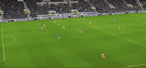 下半場開始后,埃弗頓繼續祭出三板斧,阿森納也以快制快,第50分鐘,薩卡禁區內的推射已經令皮克福德無計可施,防守球員完成關鍵解圍。
